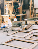 Our wooden frames are fitted with foam board hangers or sawtooth hangers, dependent on the country or production.