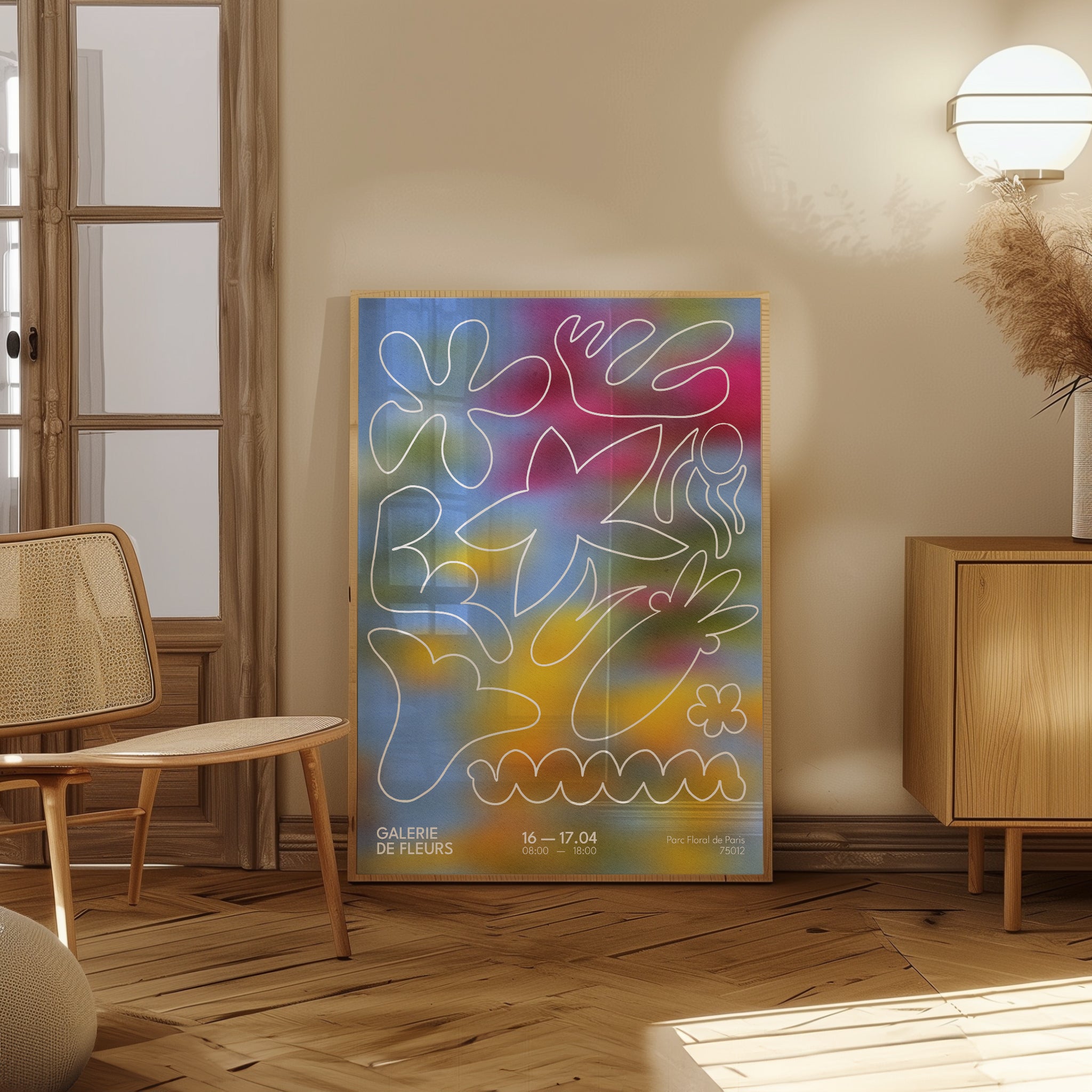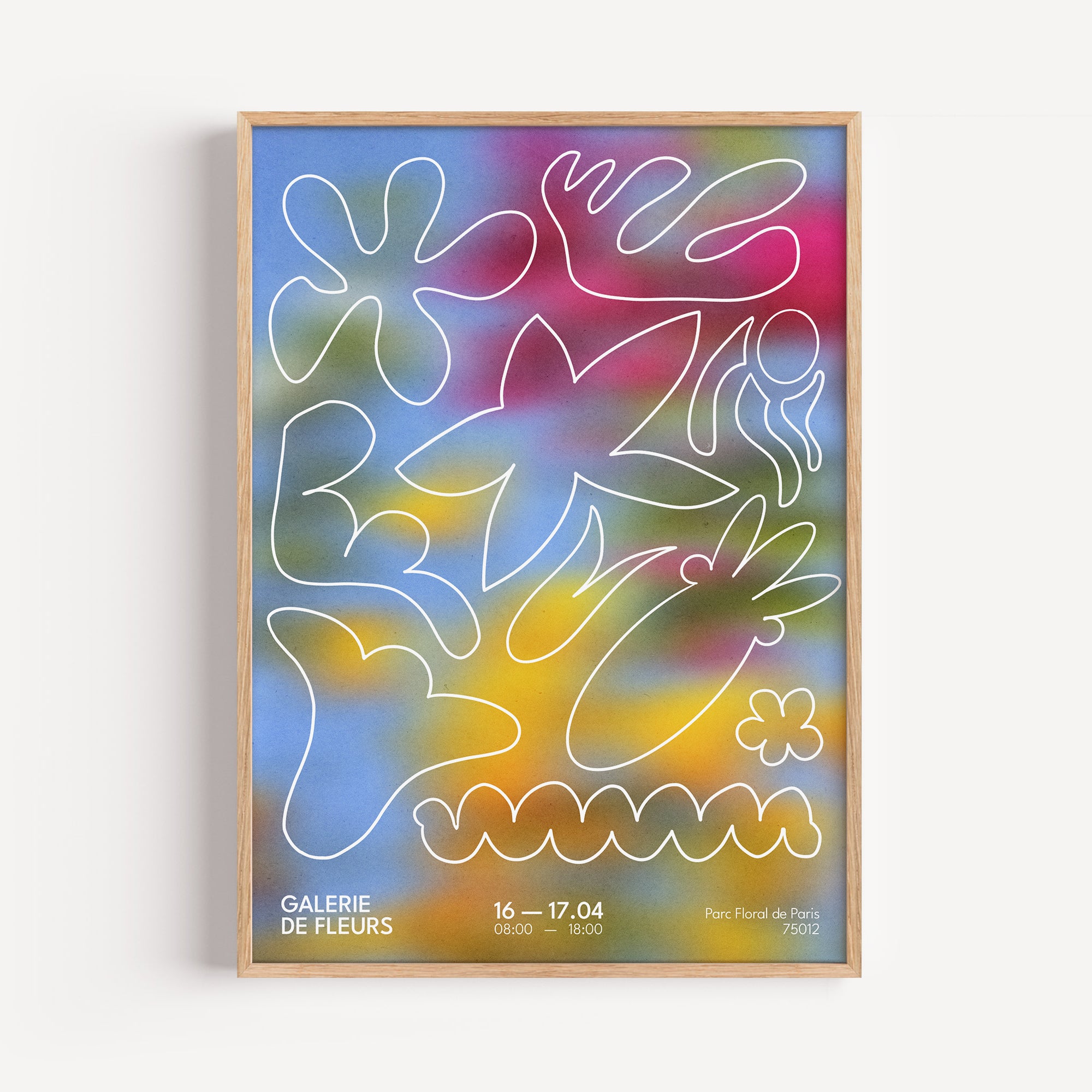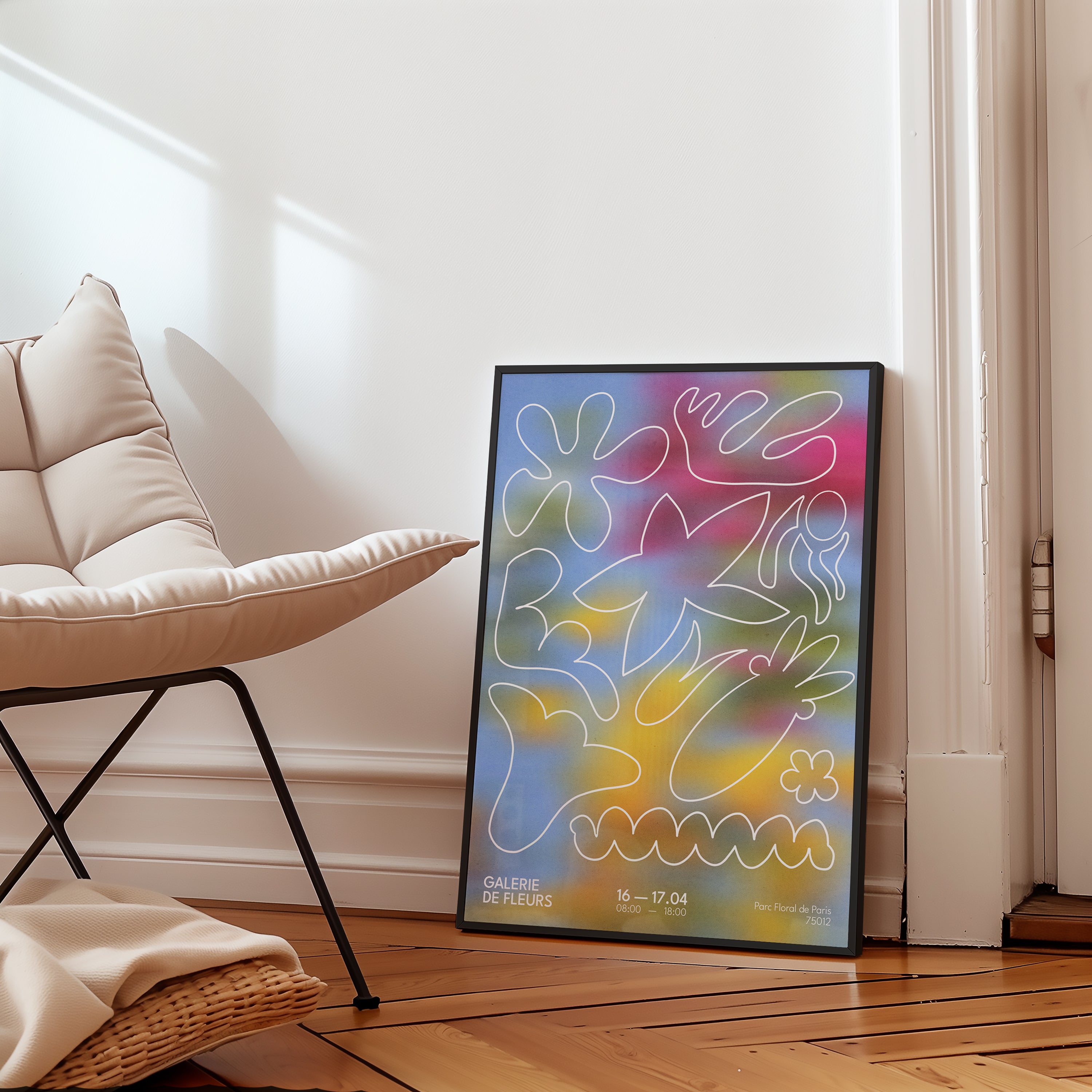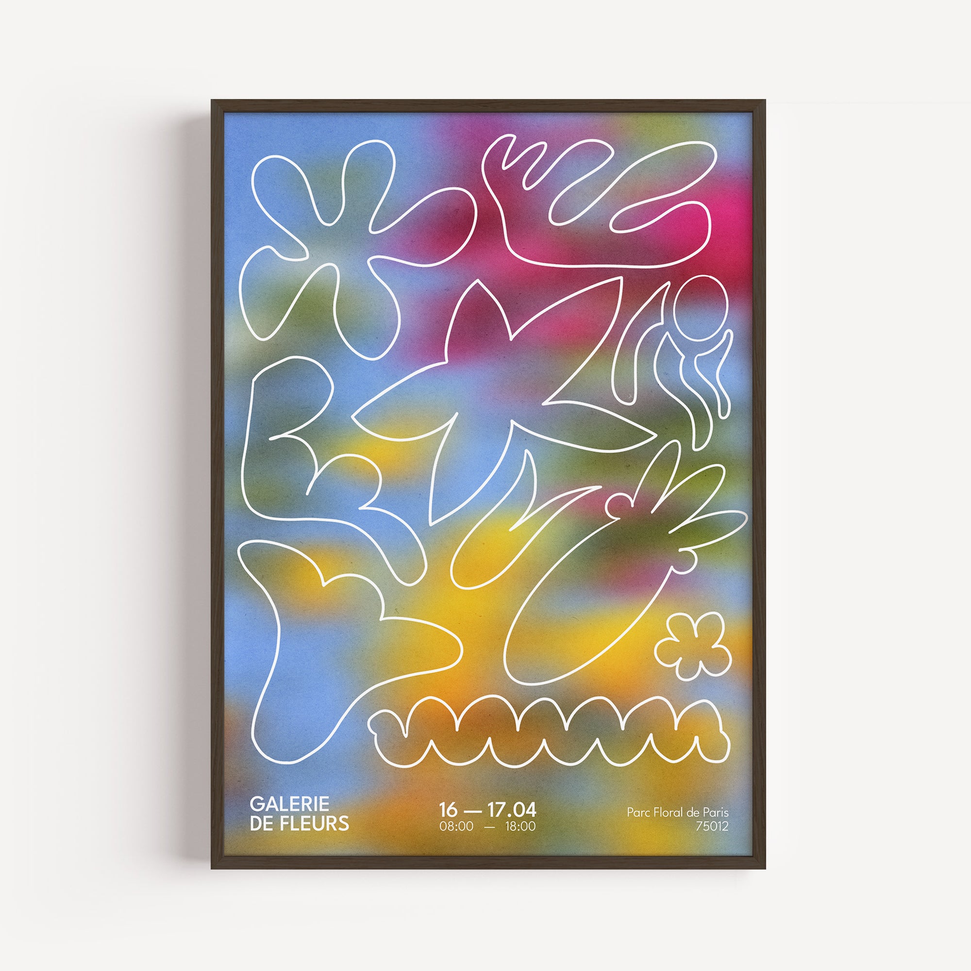Galerie de Fleurs captures attention with an ethereal blend of softly blurred flowers and intricate hand-drawn floral details. This abstract poster not only invites curiosity but also creates an elegant atmosphere perfect for promoting your gallery exhibition. Its layered design draws viewers in, inspiring them to explore the art within—making it an essential piece for showcasing creativity and sophistication.