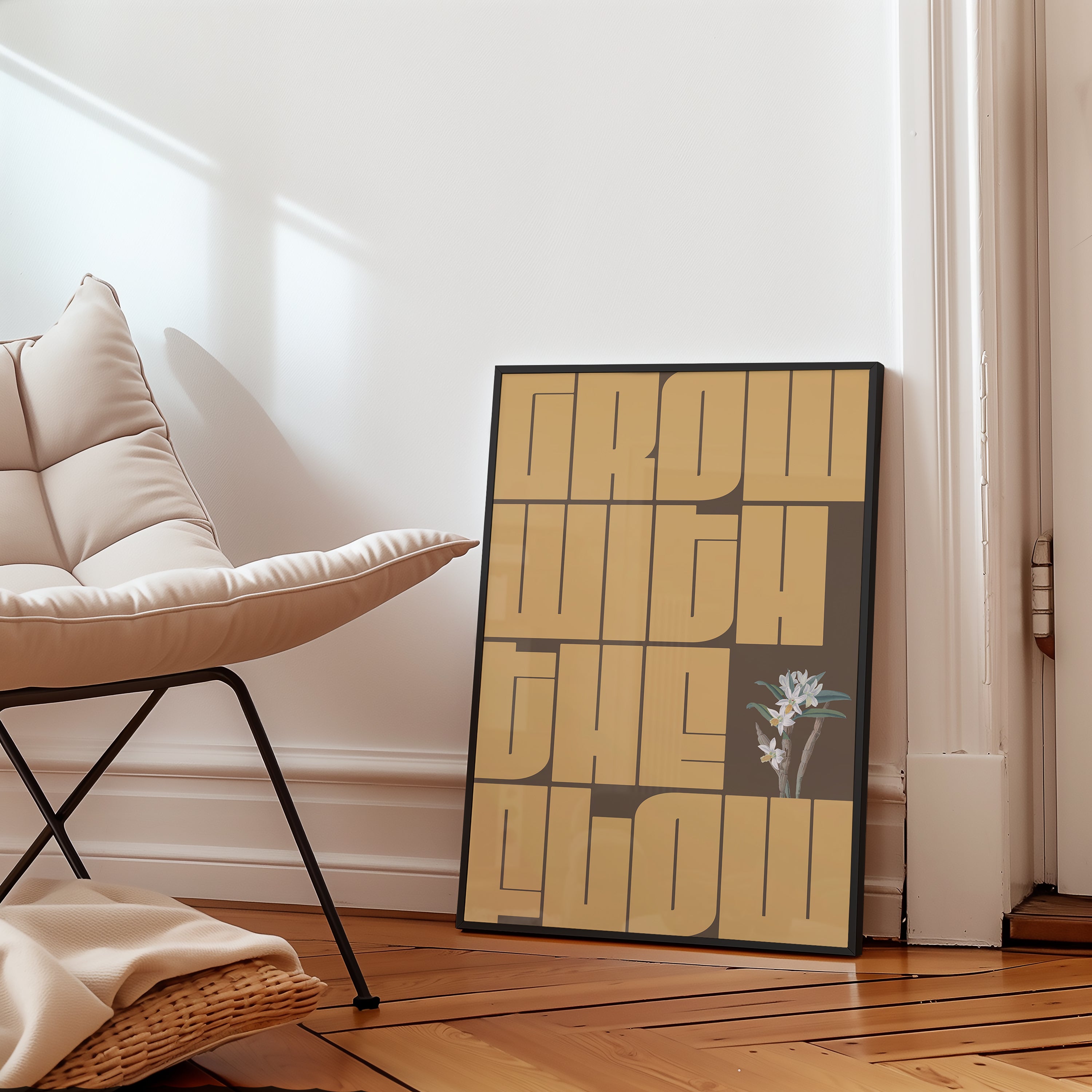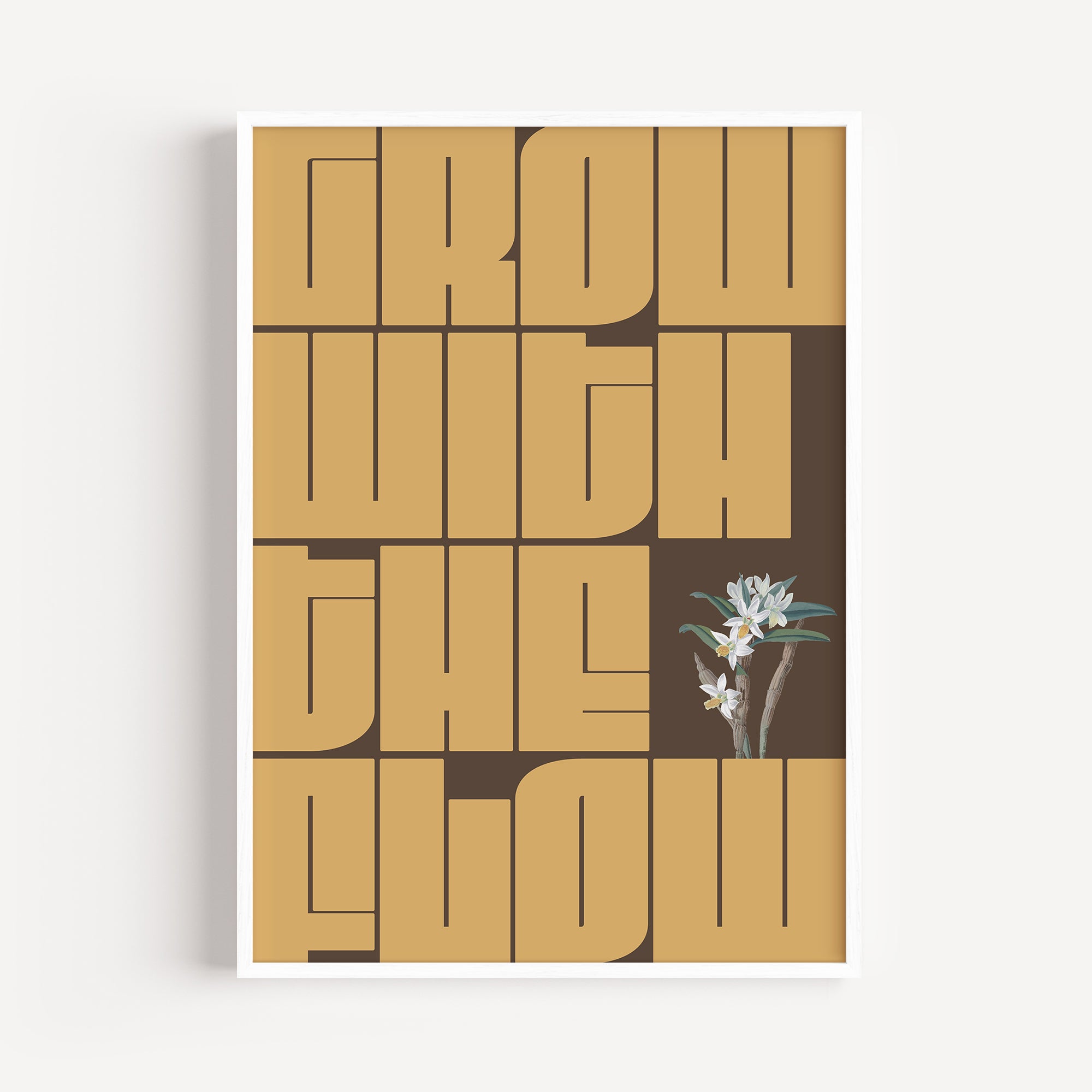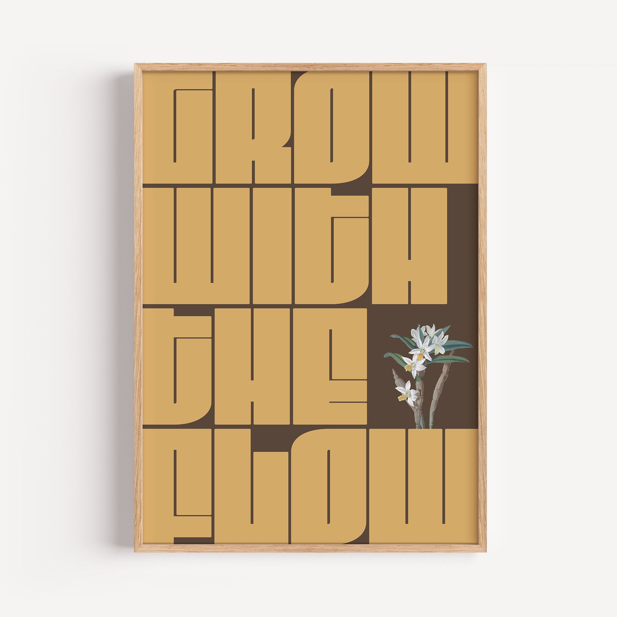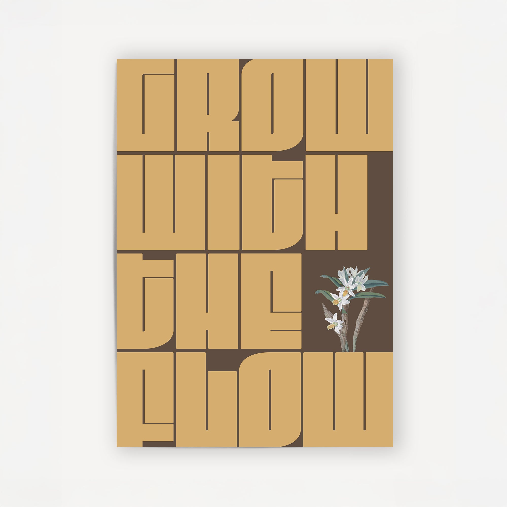 Inspire your space with the GWTF typography poster, boldly featuring the motivating phrase "grow with the flow." This striking green design encourages a mindset of growth and adaptability, perfect for any environment where positive energy and creativity thrive. Elevate your decor and remind yourself daily to embrace change and progress naturally.