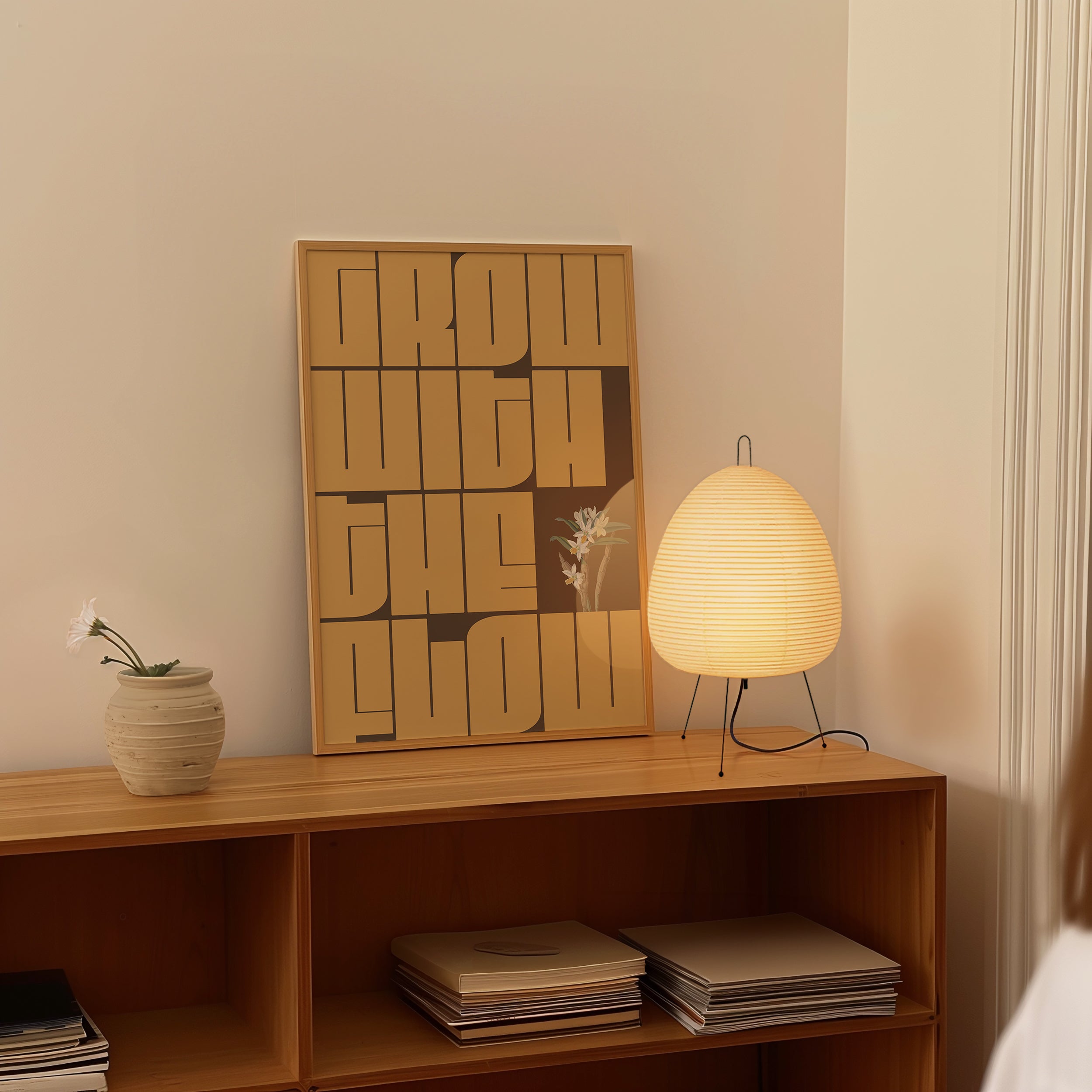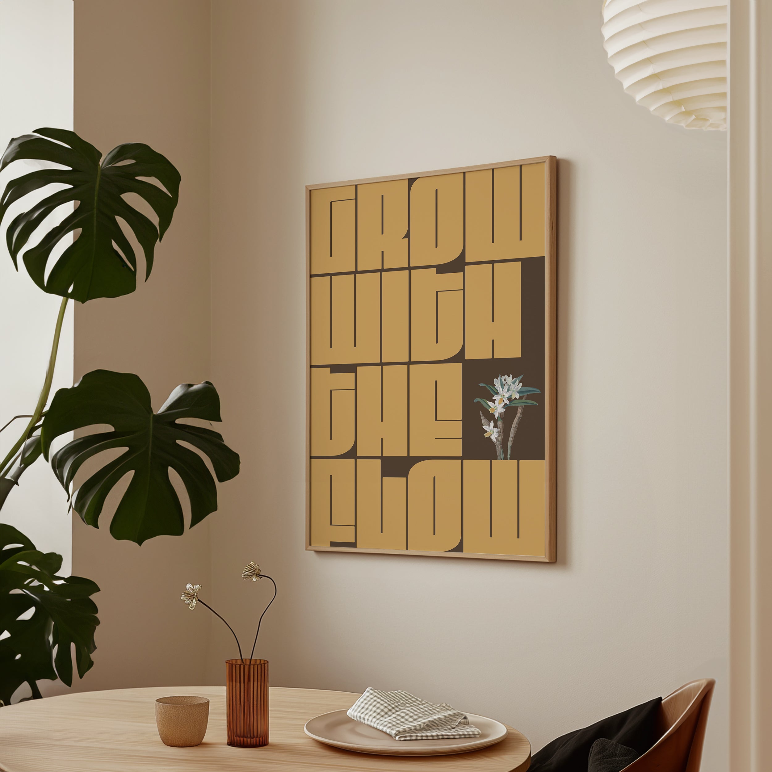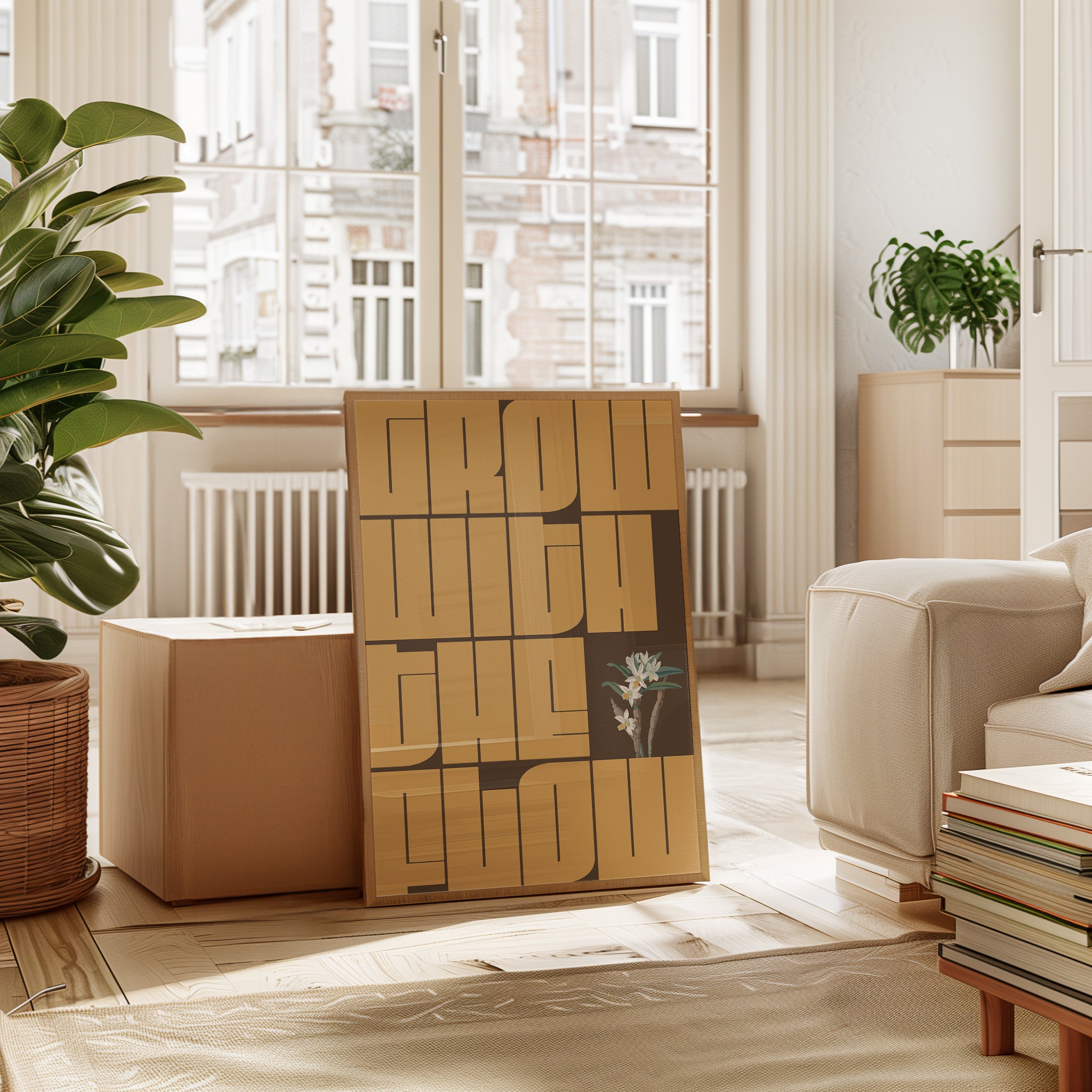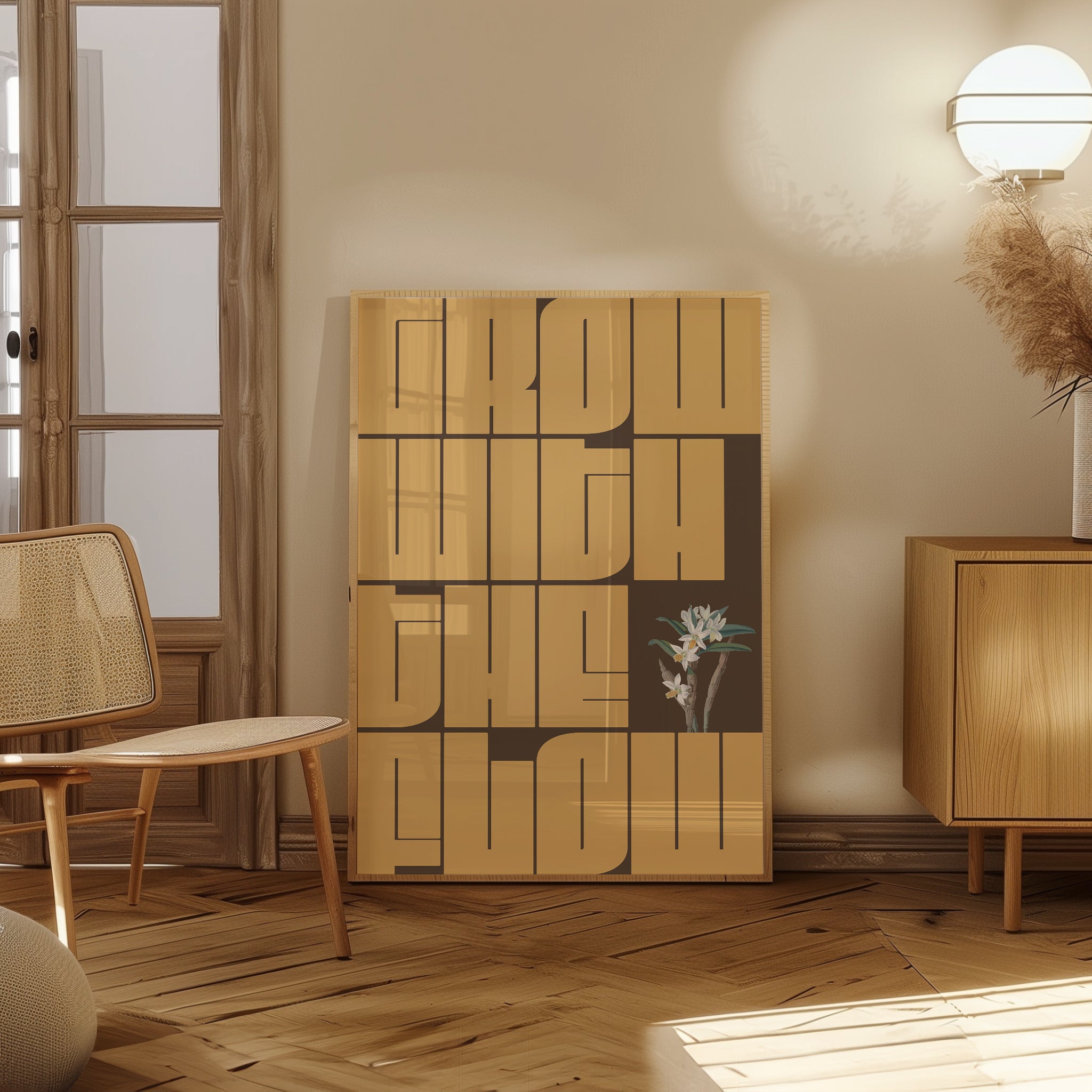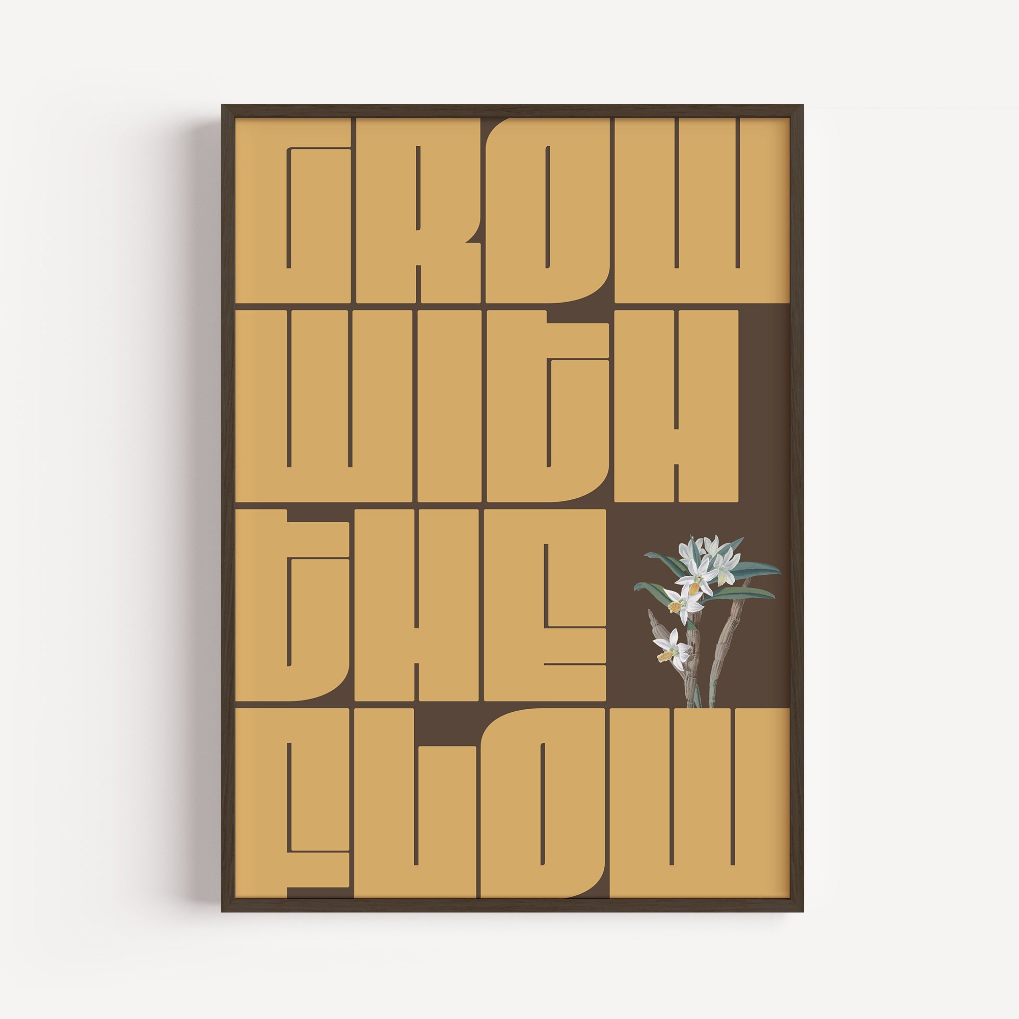 Inspire your space with the GWTF typography poster, boldly featuring the motivating phrase "grow with the flow." This striking green design encourages a mindset of growth and adaptability, perfect for any environment where positive energy and creativity thrive. Elevate your decor and remind yourself daily to embrace change and progress naturally.