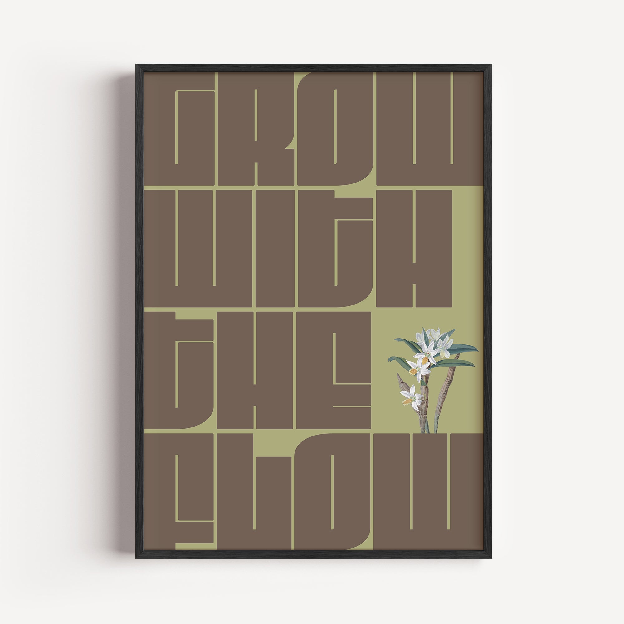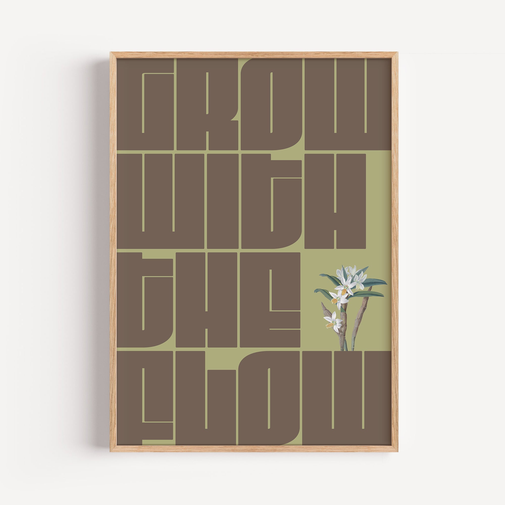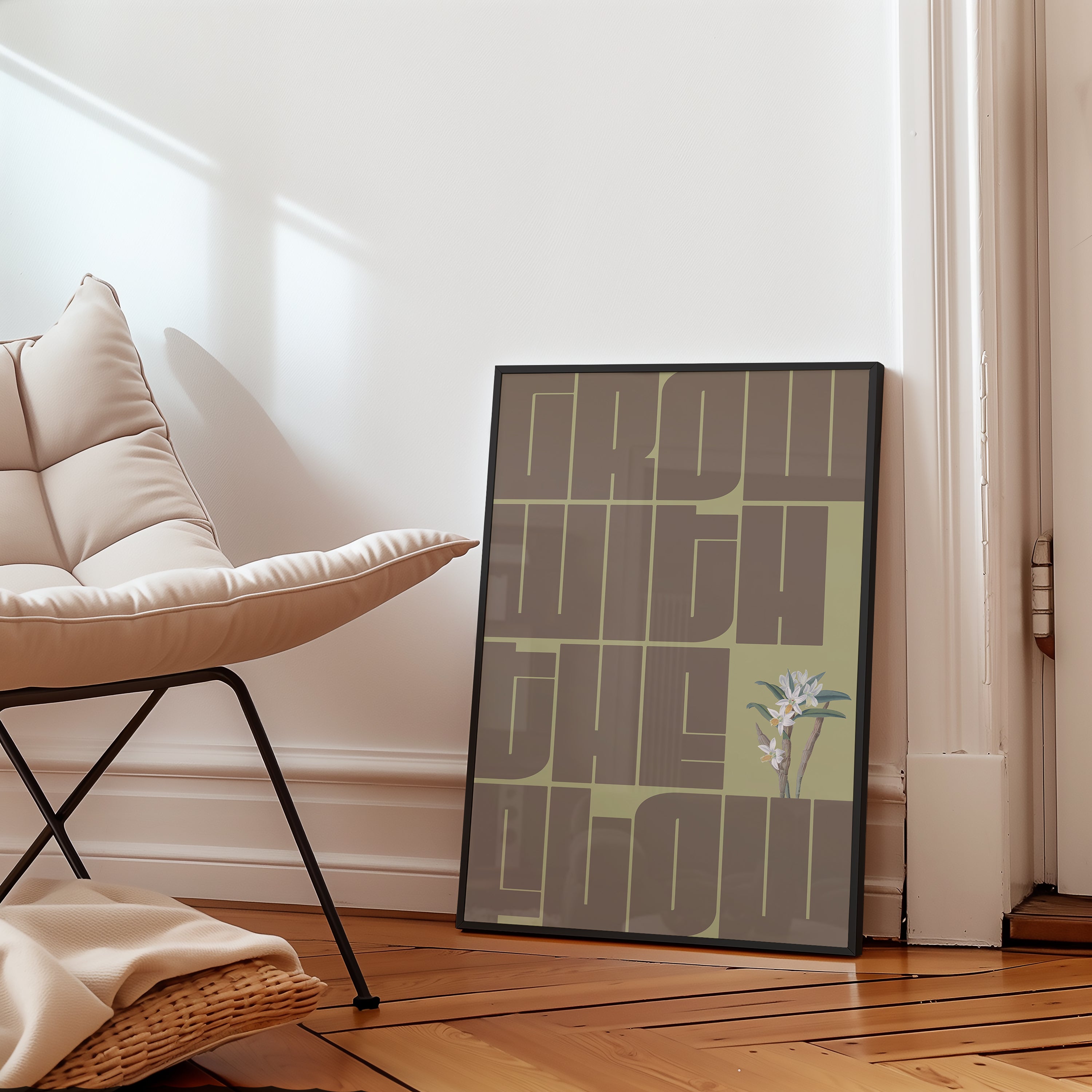 Inspire your space with the GWTF (Green) typography poster, boldly featuring the motivating phrase "grow with the flow." This striking green design encourages a mindset of growth and adaptability, perfect for any environment where positive energy and creativity thrive. Elevate your decor and remind yourself daily to embrace change and progress naturally.