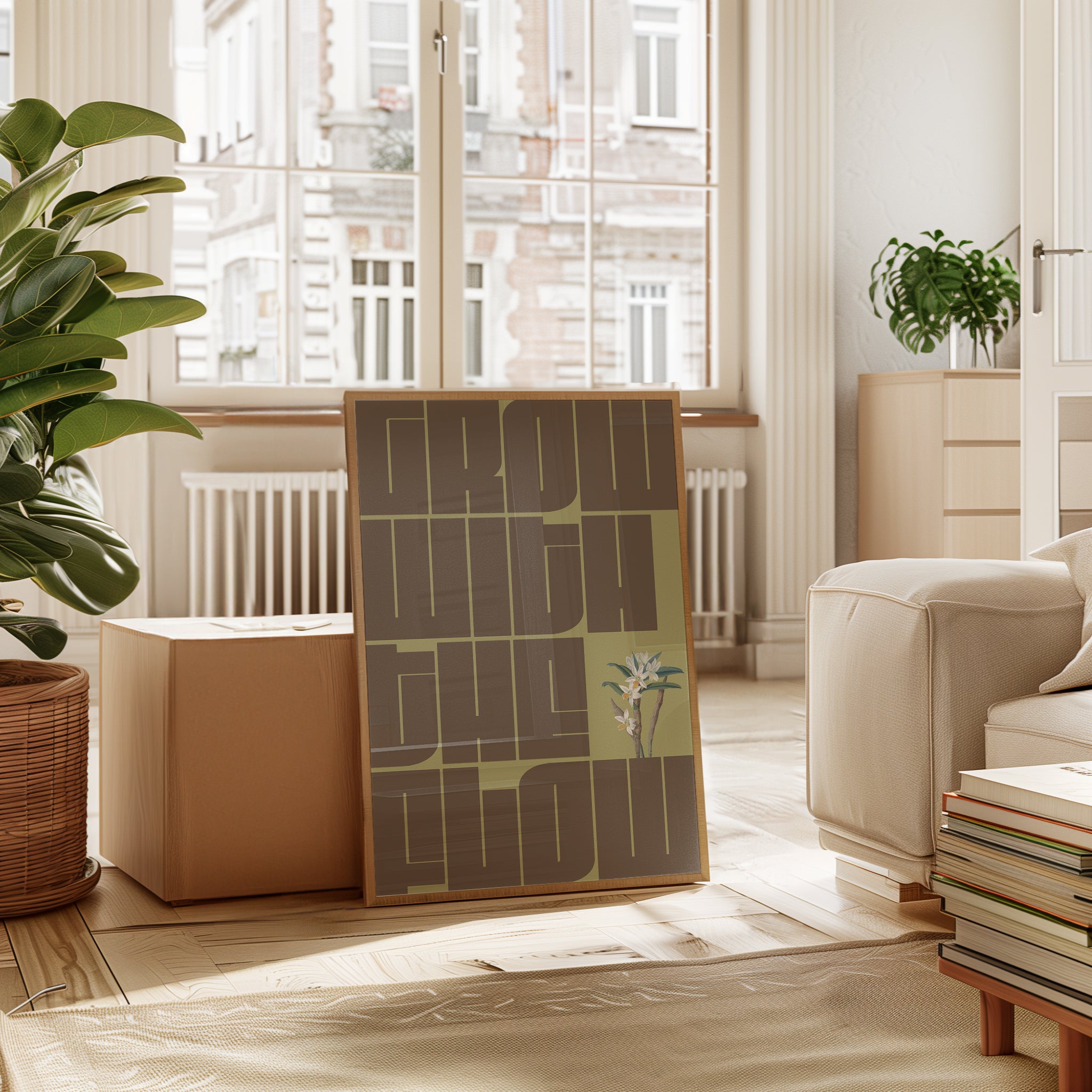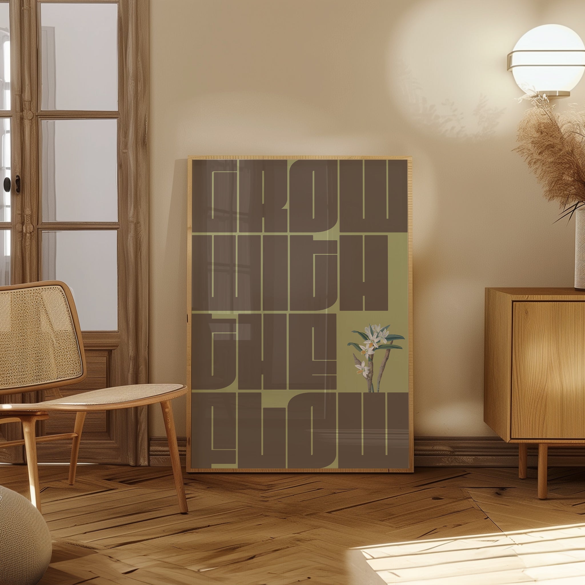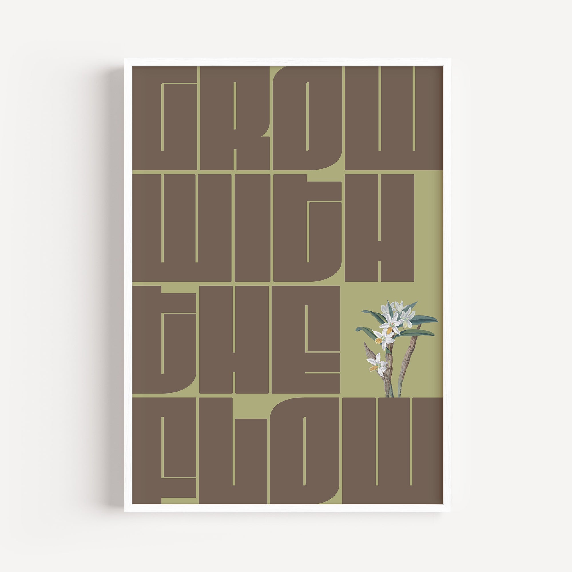 Inspire your space with the GWTF (Green) typography poster, boldly featuring the motivating phrase "grow with the flow." This striking green design encourages a mindset of growth and adaptability, perfect for any environment where positive energy and creativity thrive. Elevate your decor and remind yourself daily to embrace change and progress naturally.